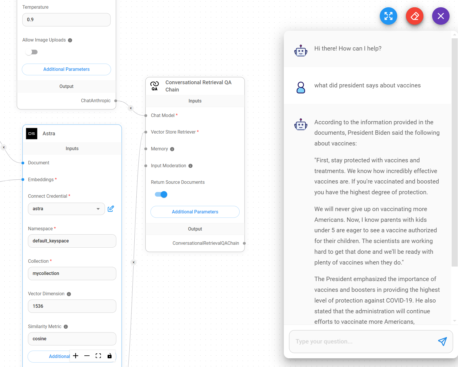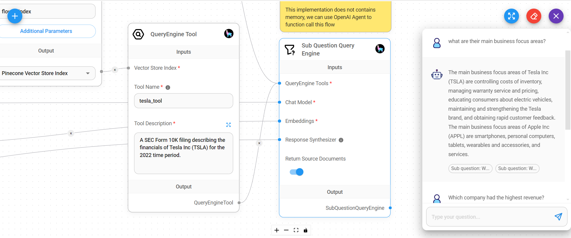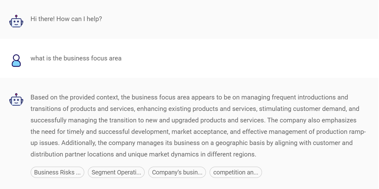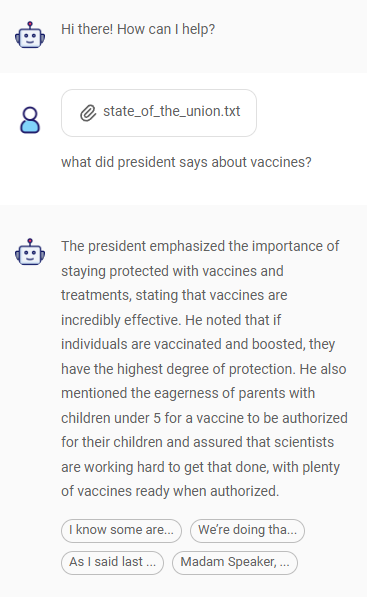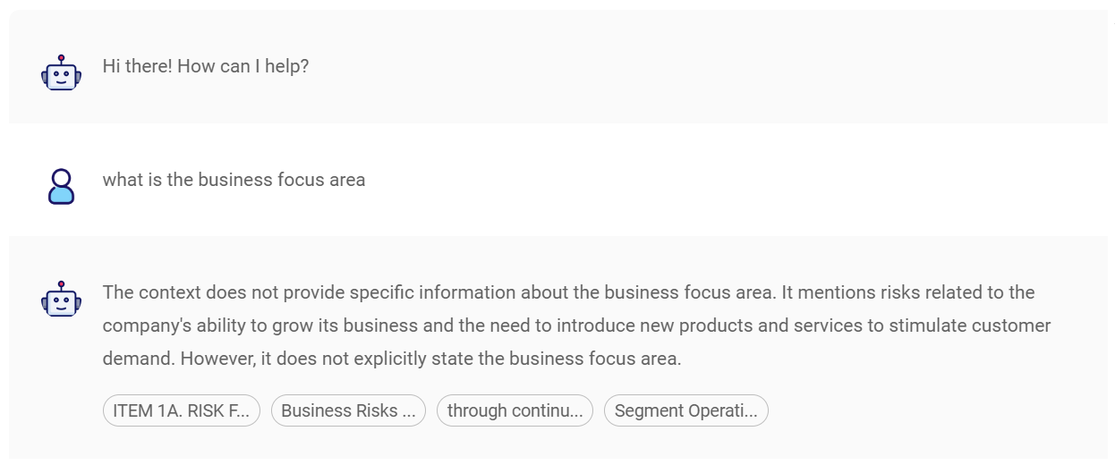 Querying is relatively straight-forward. After you have verified that data is upserted to vector database, you can start asking question in the chat: