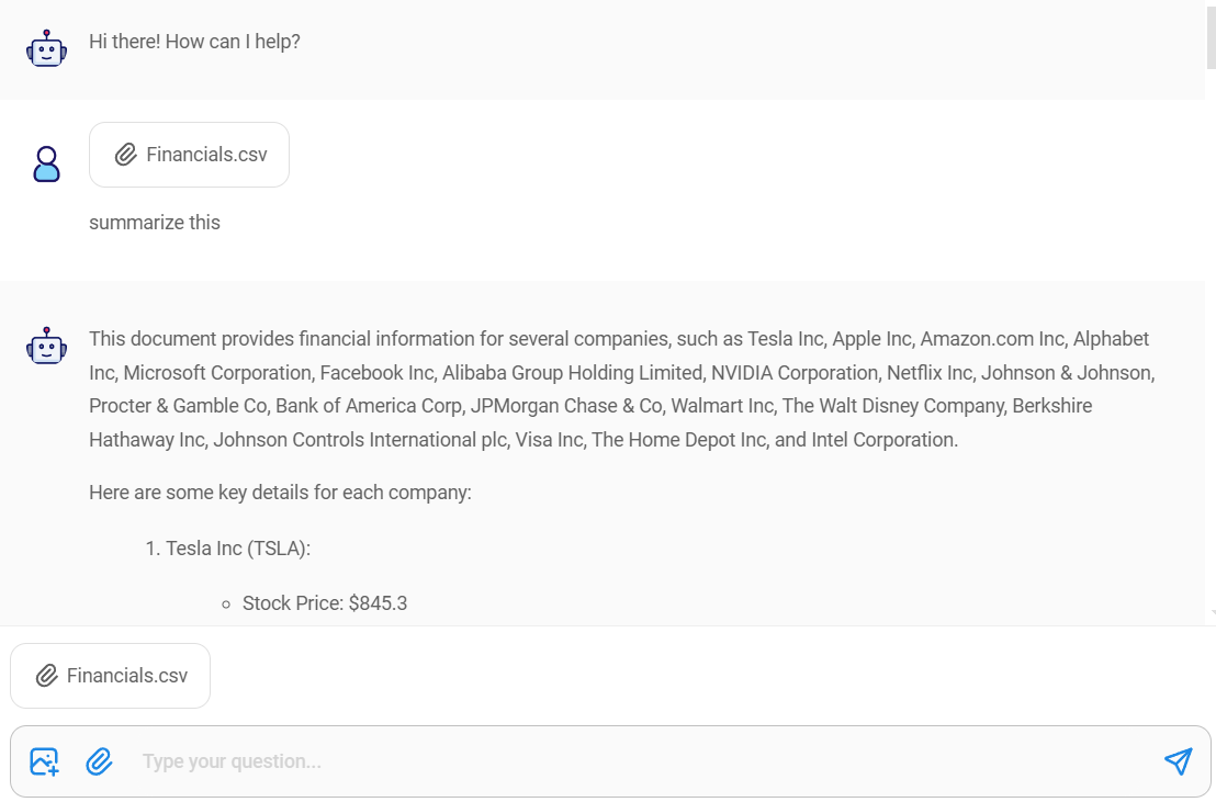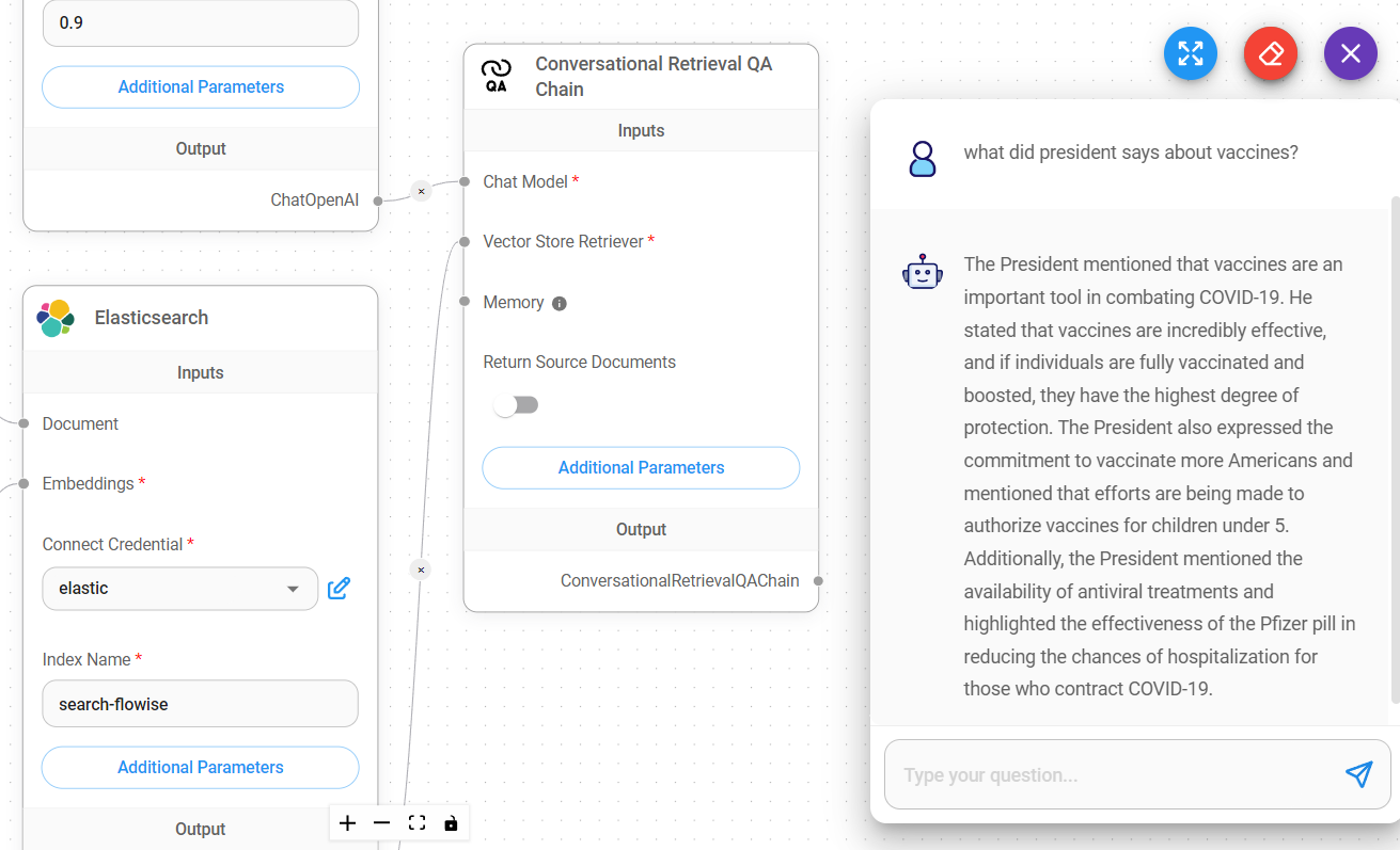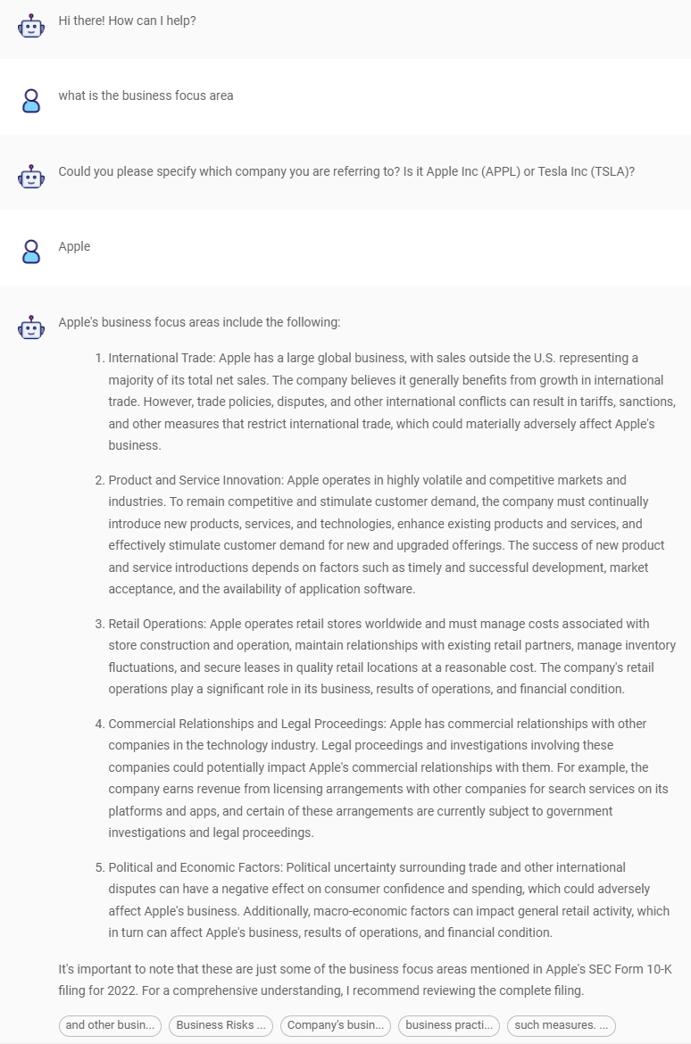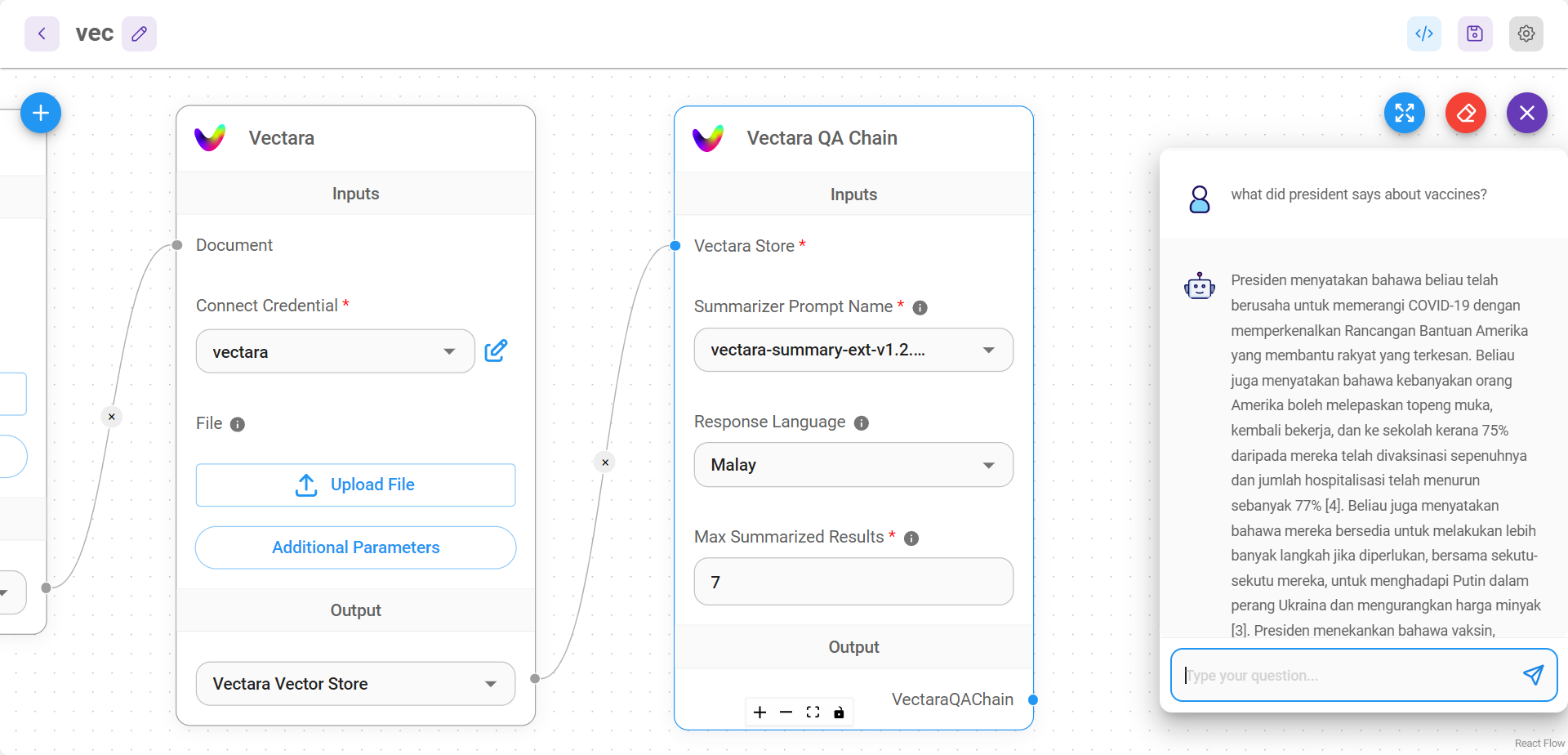 Querying is relatively straight-forward. After you have verified that data is upserted to vector database, you can start asking question in the chat: