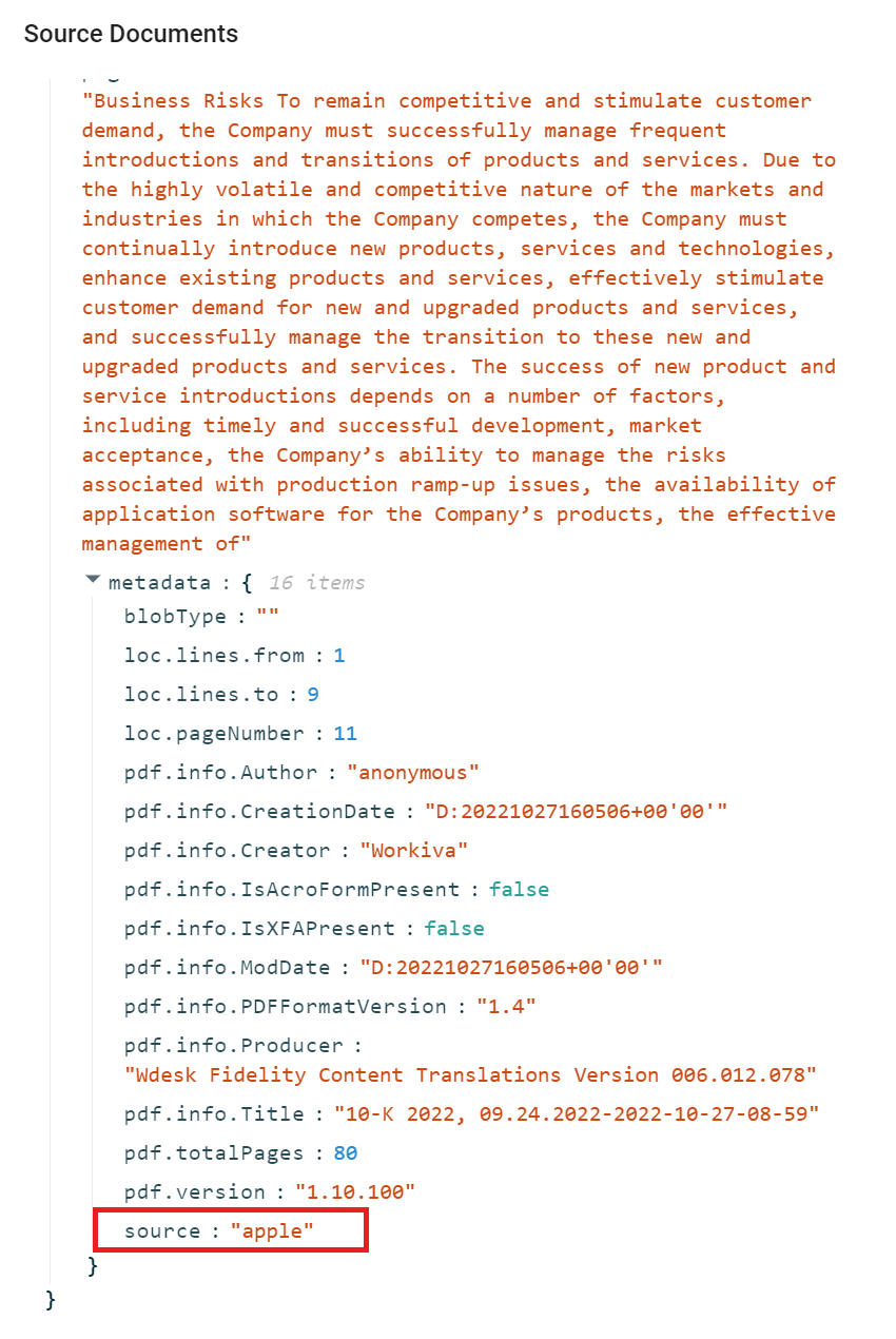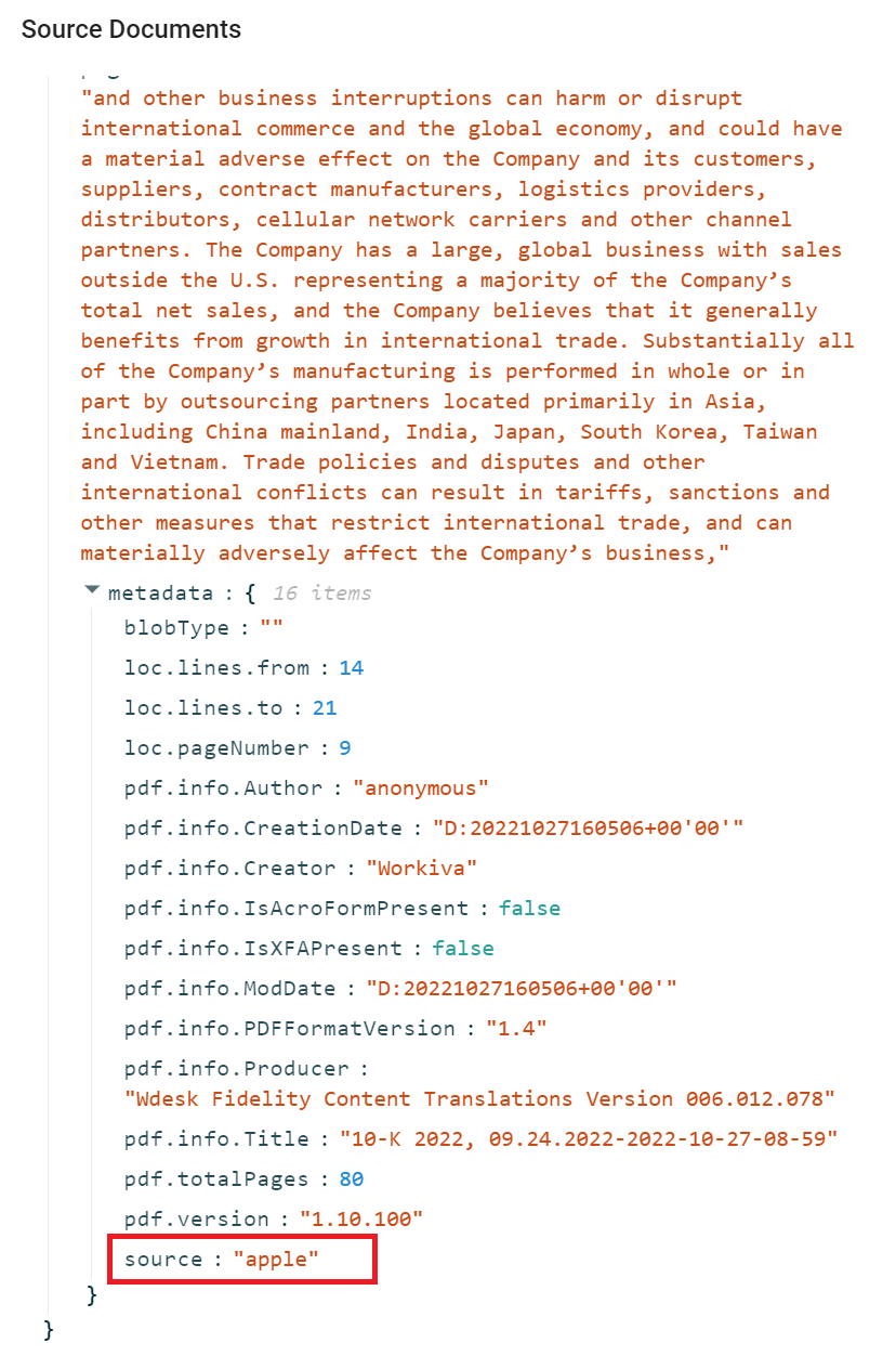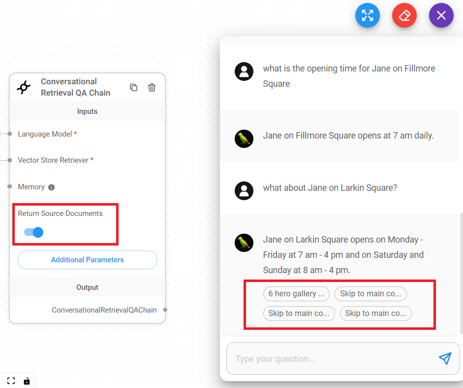 You can also turn on the Return Source Documents option to return a list of document chunks where the AI's response is coming from.