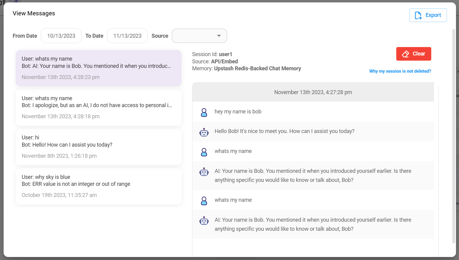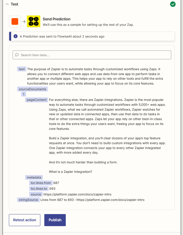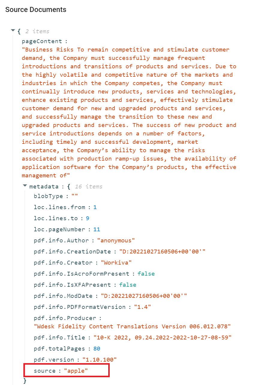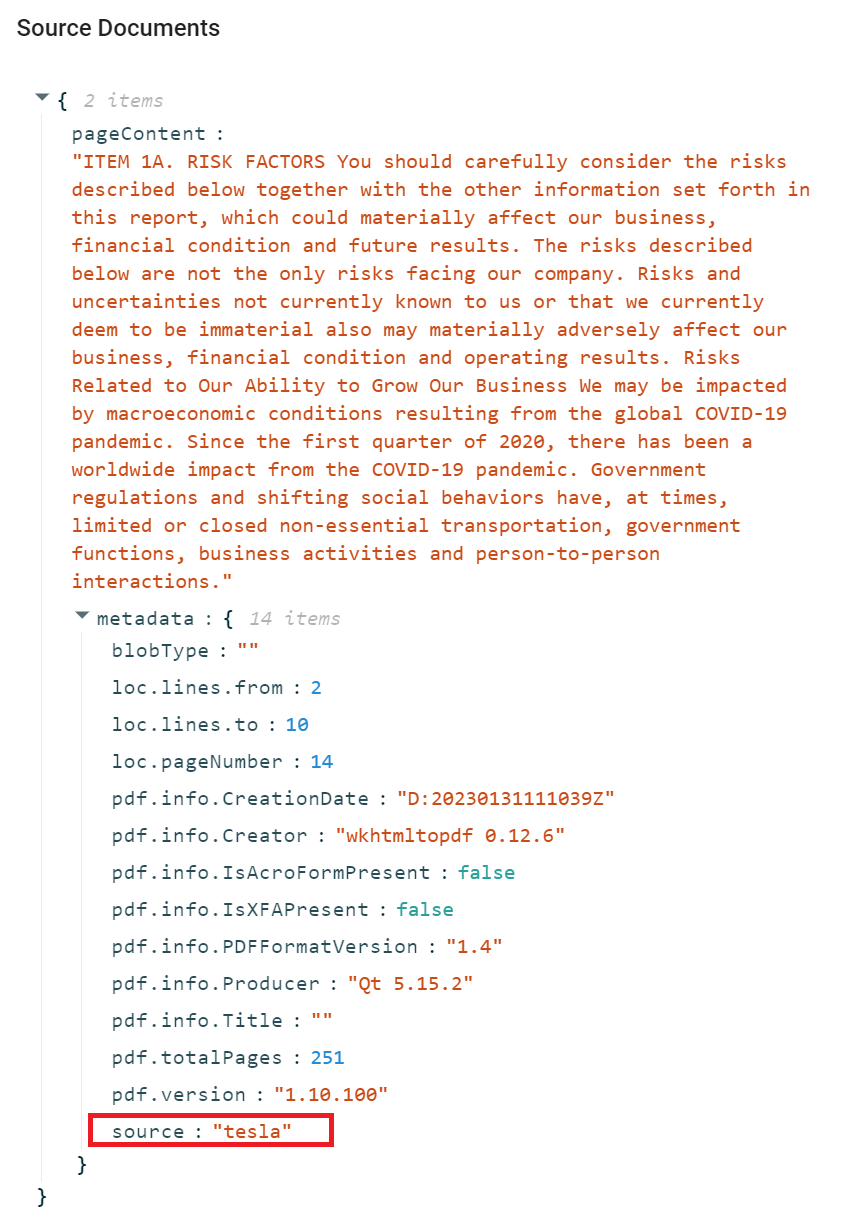 You can also turn on the Return Source Documents option to return a list of document chunks where the AI's response is coming from.