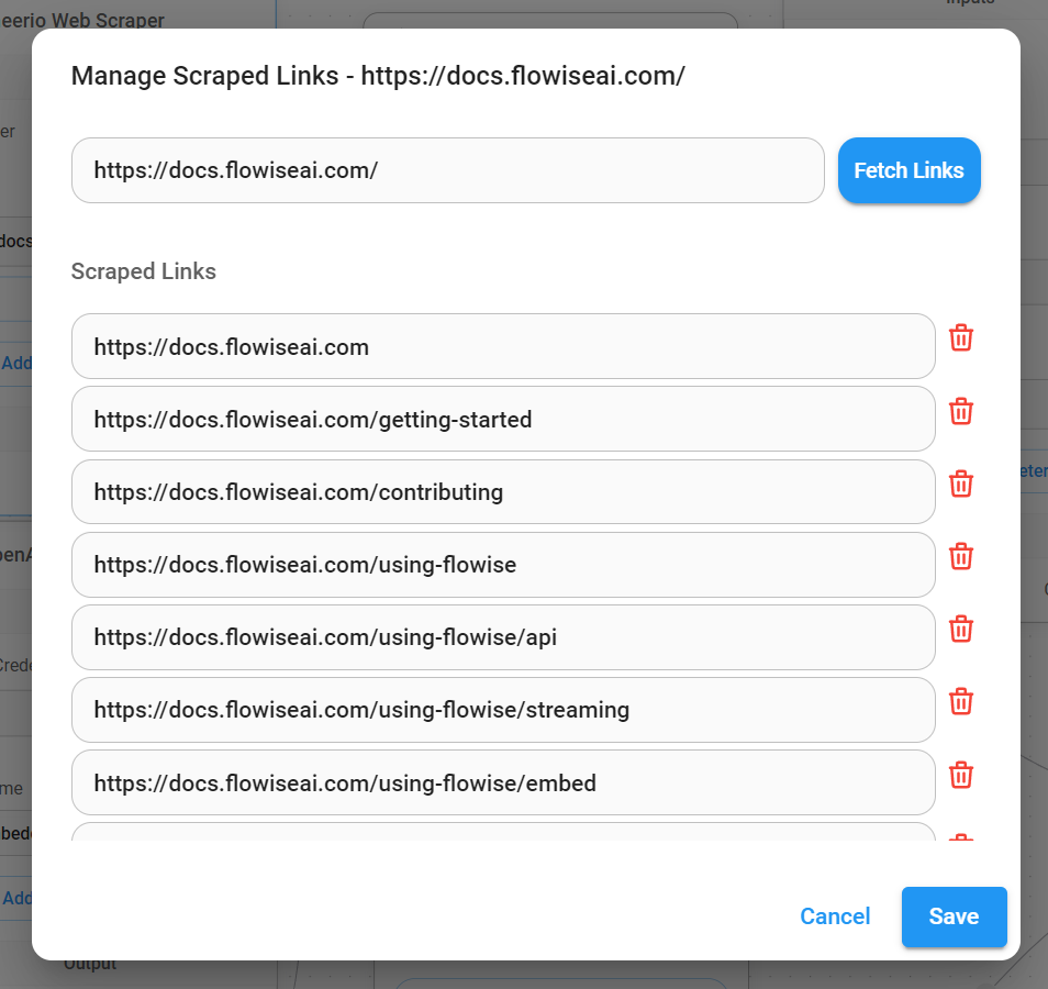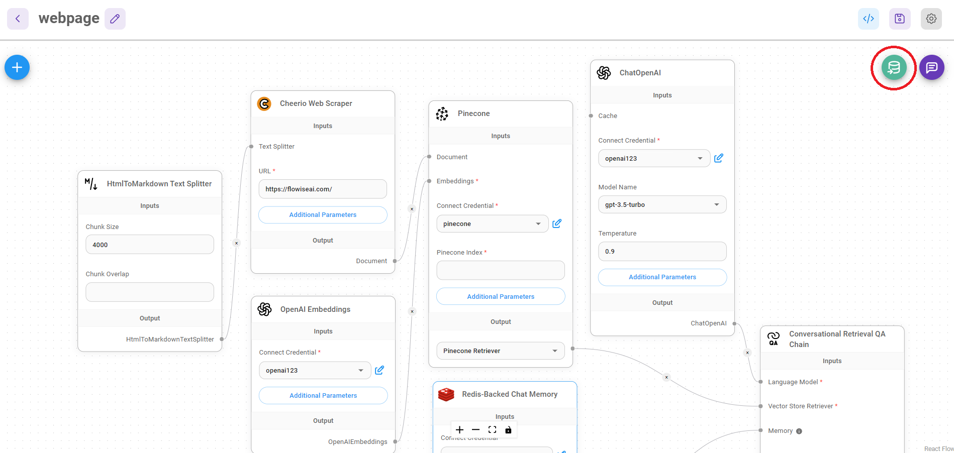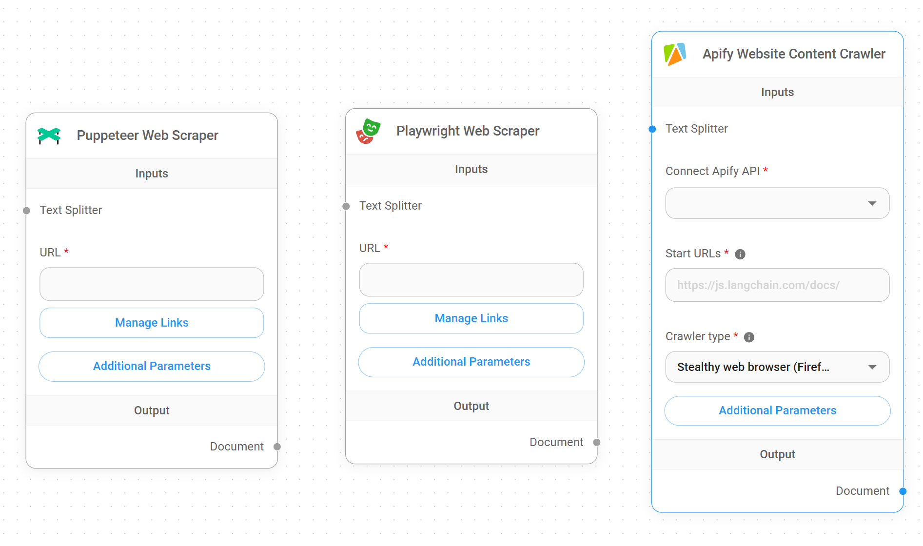 We are going to use Cheerio Web Scraper node to scrape links from a given URL and the HtmlToMarkdown Text Splitter to split the scraped content into smaller pieces.