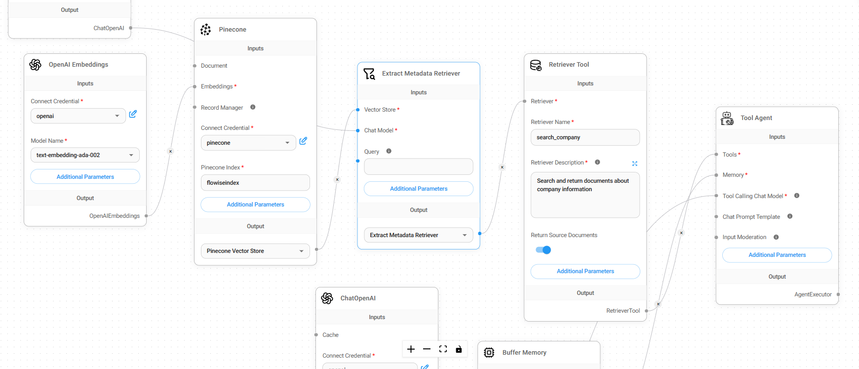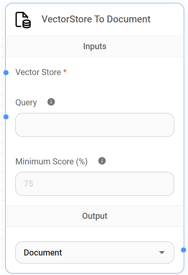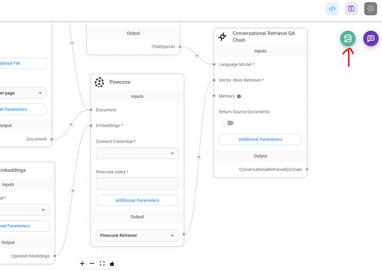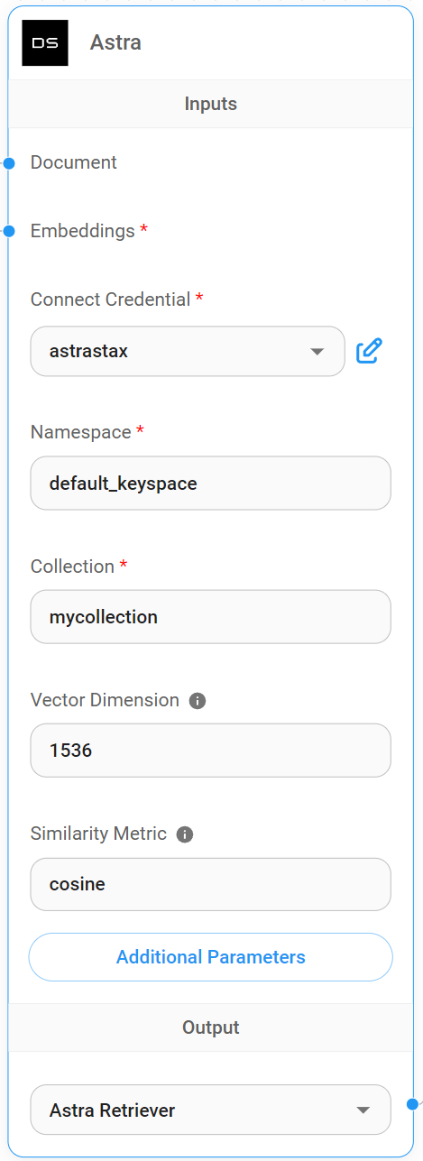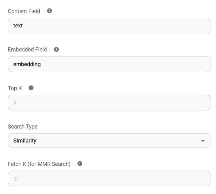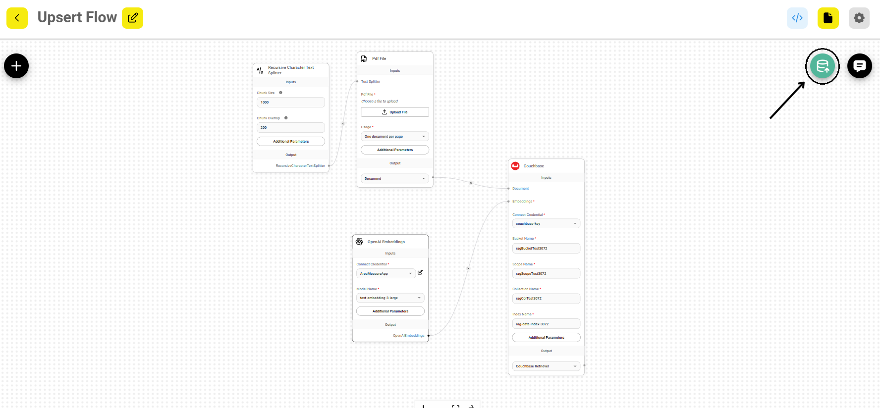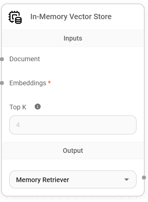 - Finally, the Vector Store node acts as the bridge between aimicromind and our database. It sends our embeddings, along with any associated metadata, to the designated Vector Store index.