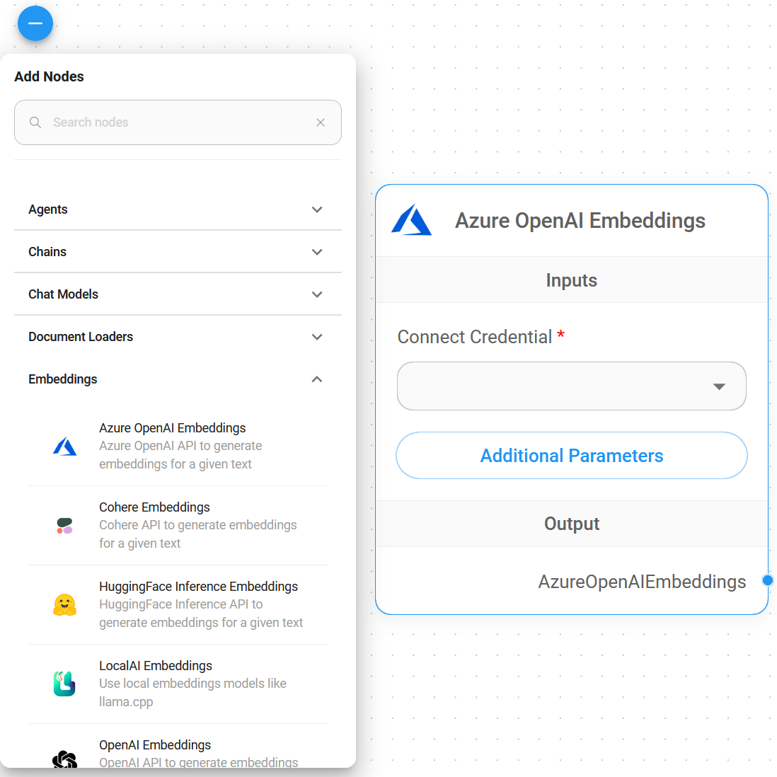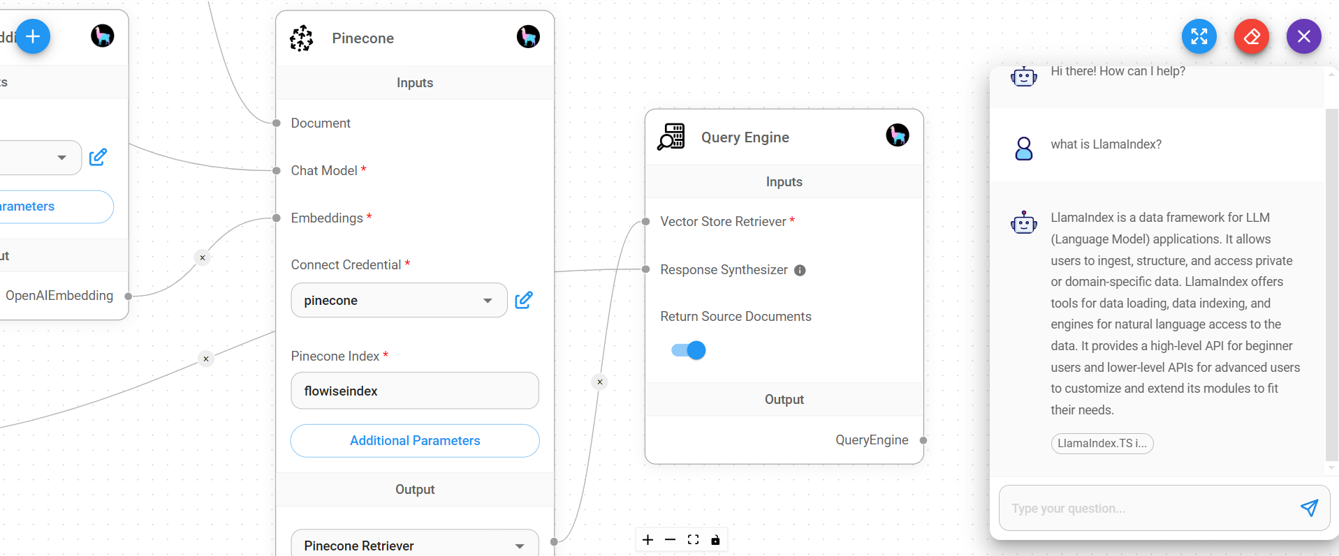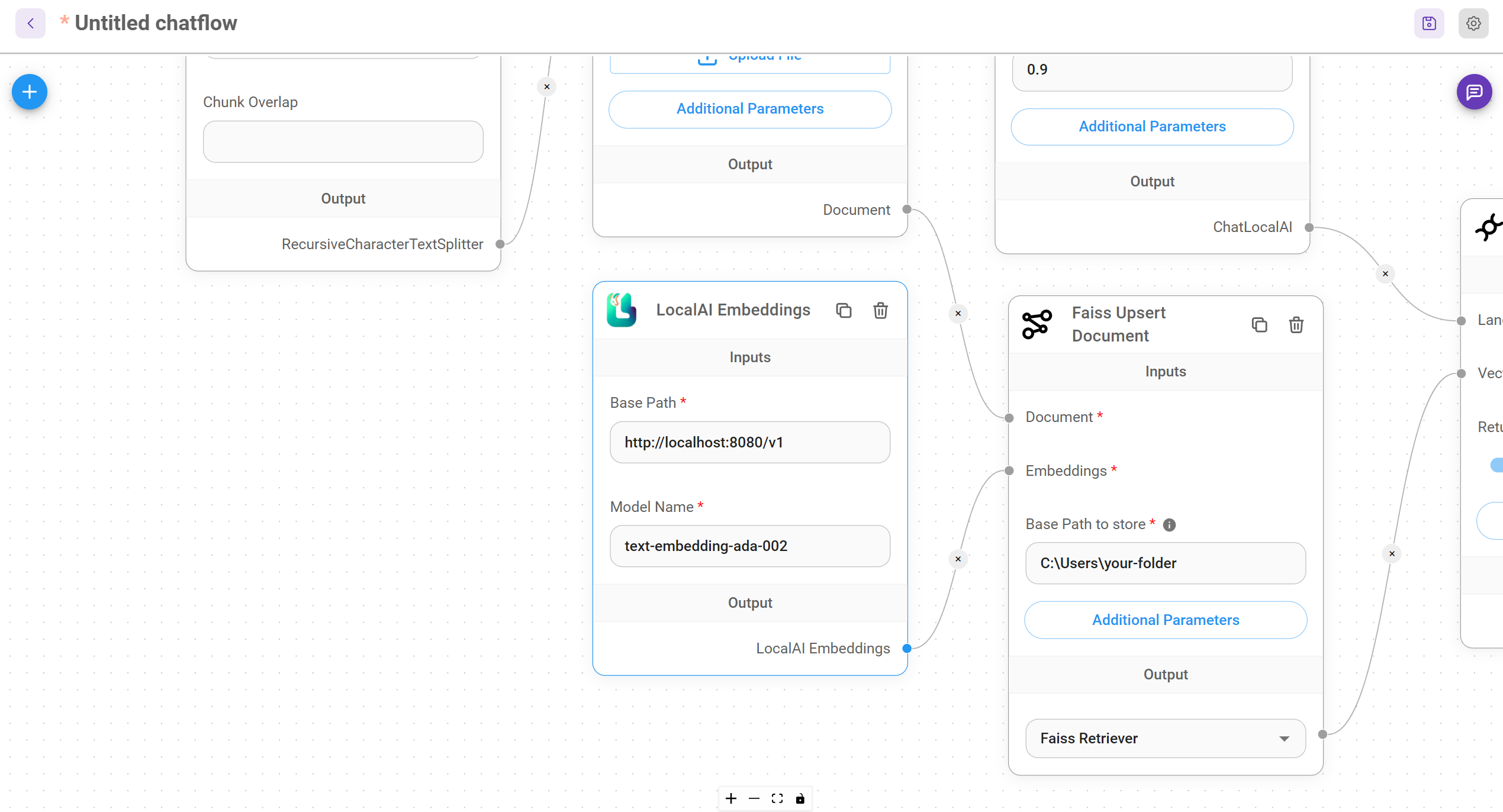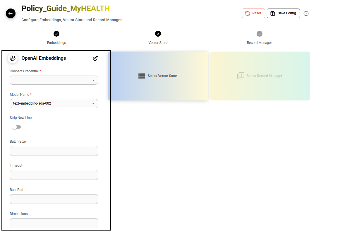 - Finally, the Vector Store node acts as the bridge between aimicromind and our database. It sends our embeddings, along with any associated metadata, to the designated Vector Store index.