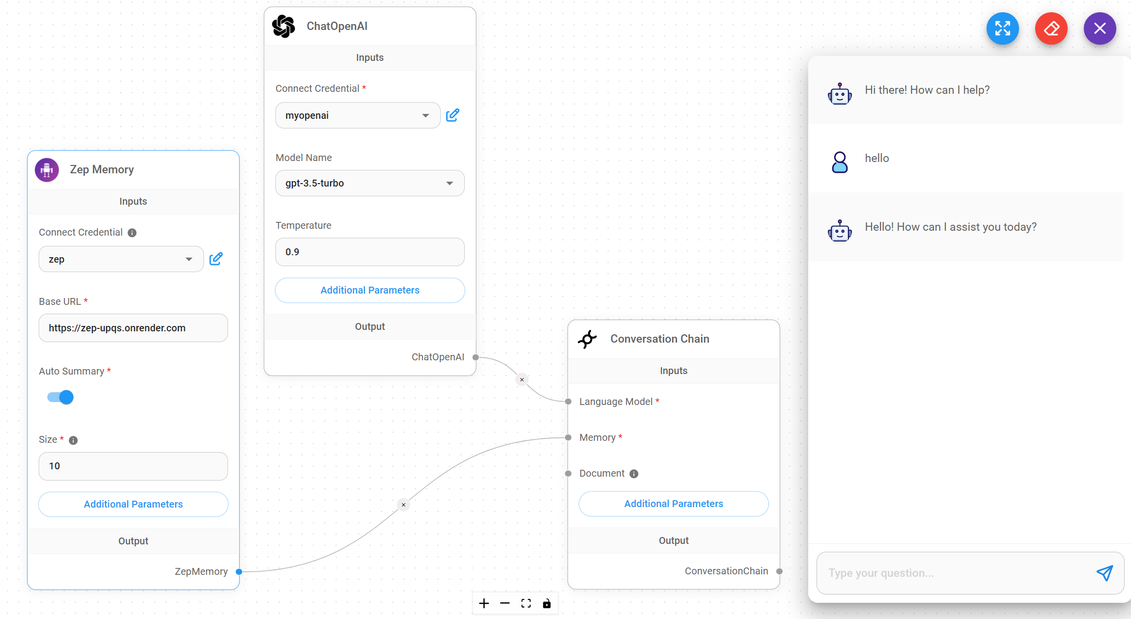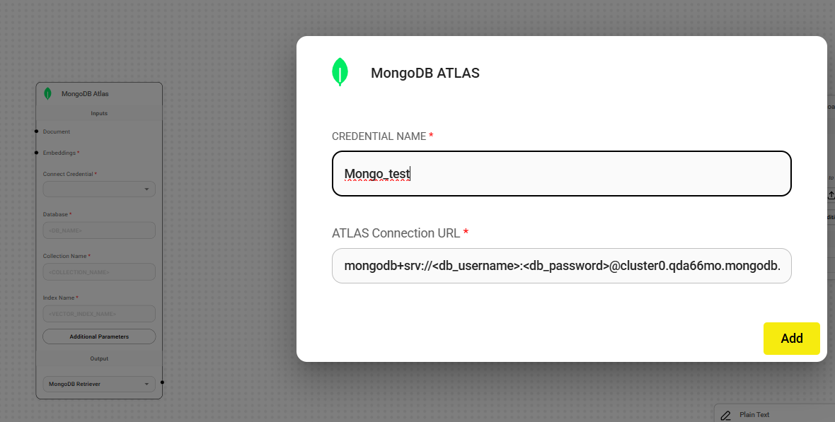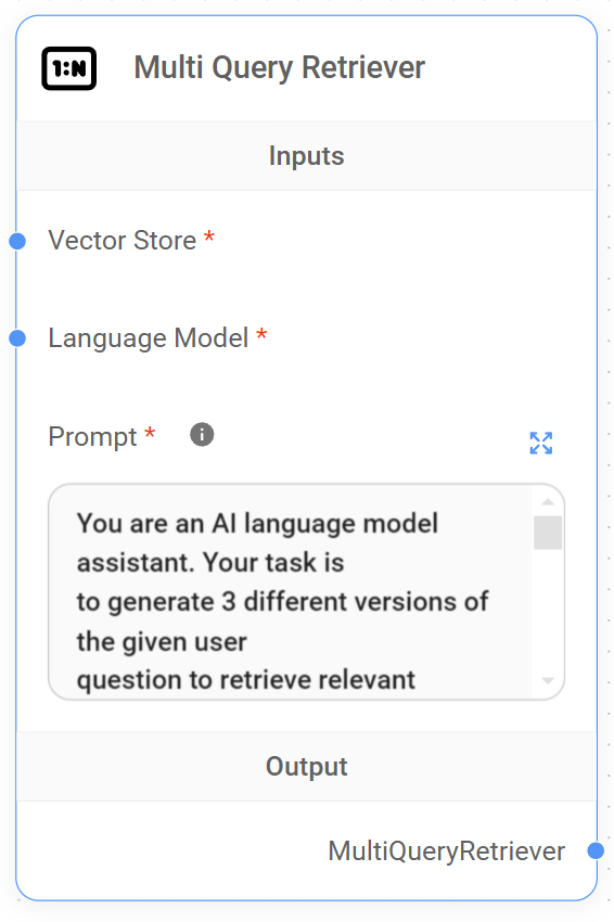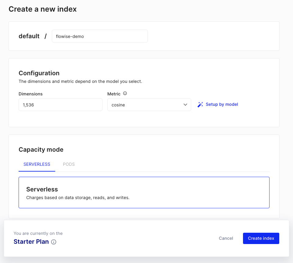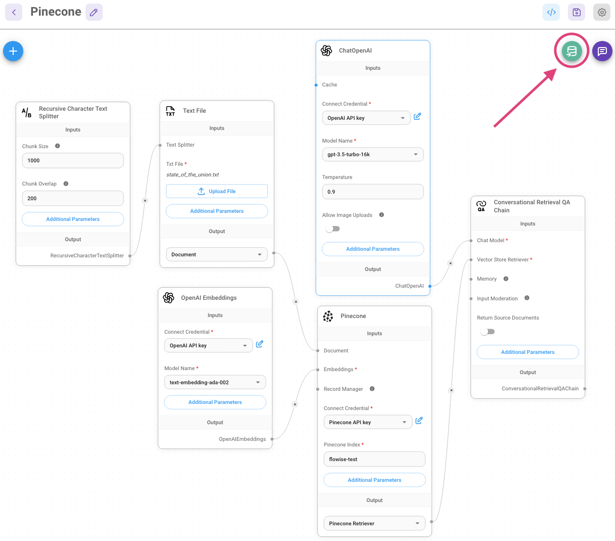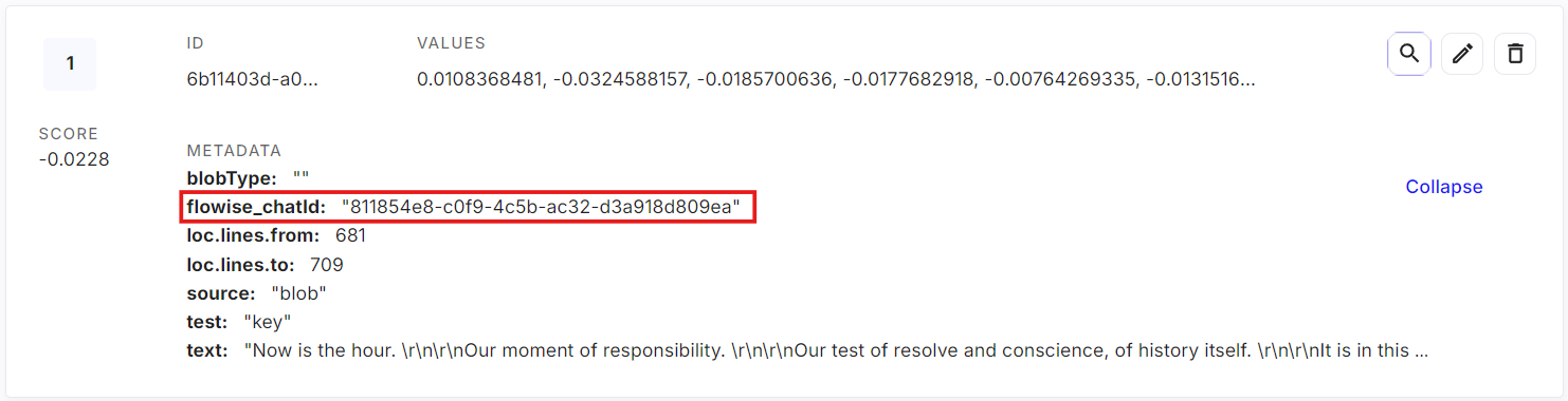 - Finally, the Vector Store node acts as the bridge between aimicromind and our database. It sends our embeddings, along with any associated metadata, to the designated Vector Store index.