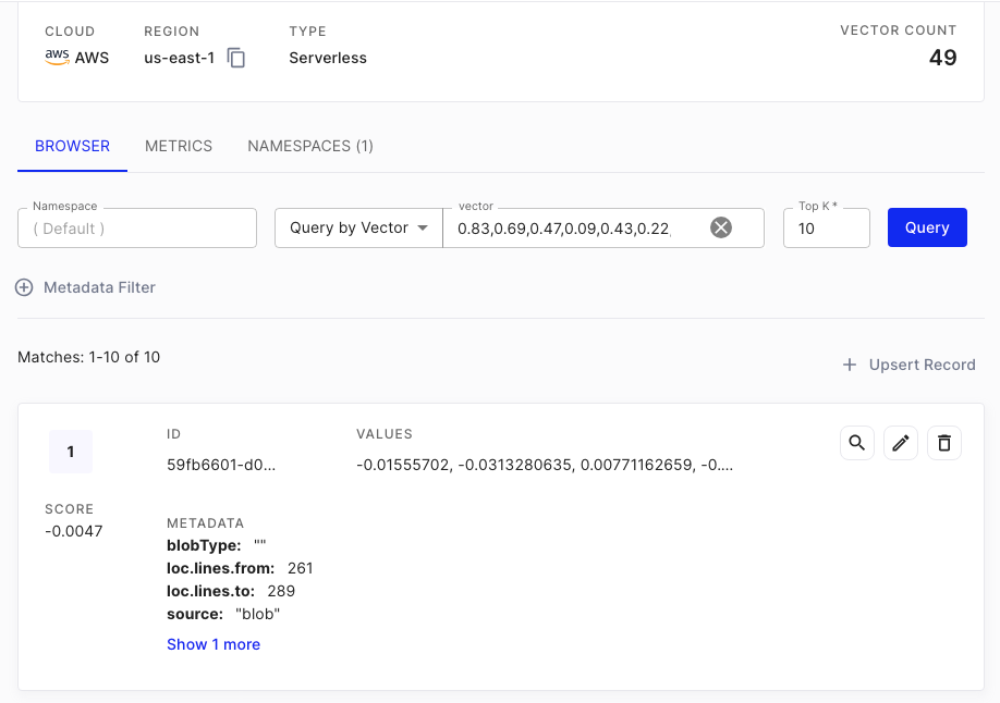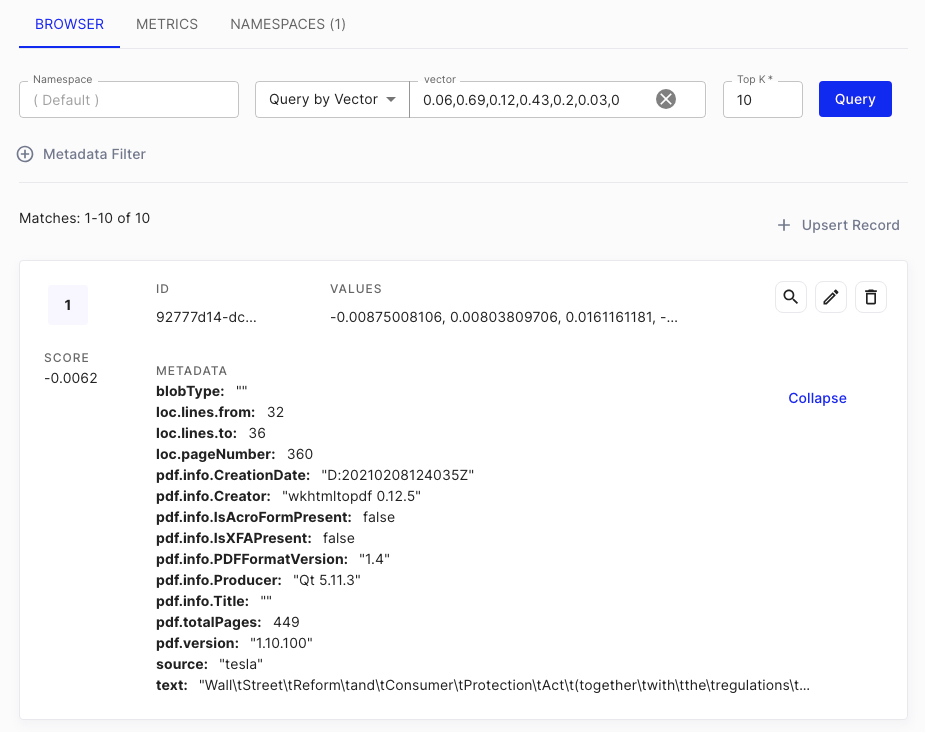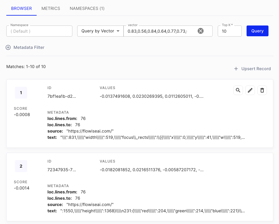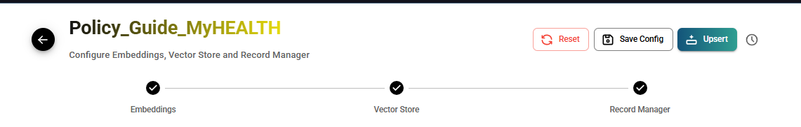 - Once upserted, our data is now represented as vectors within the Vector Store, ready for similarity search and retrieval.