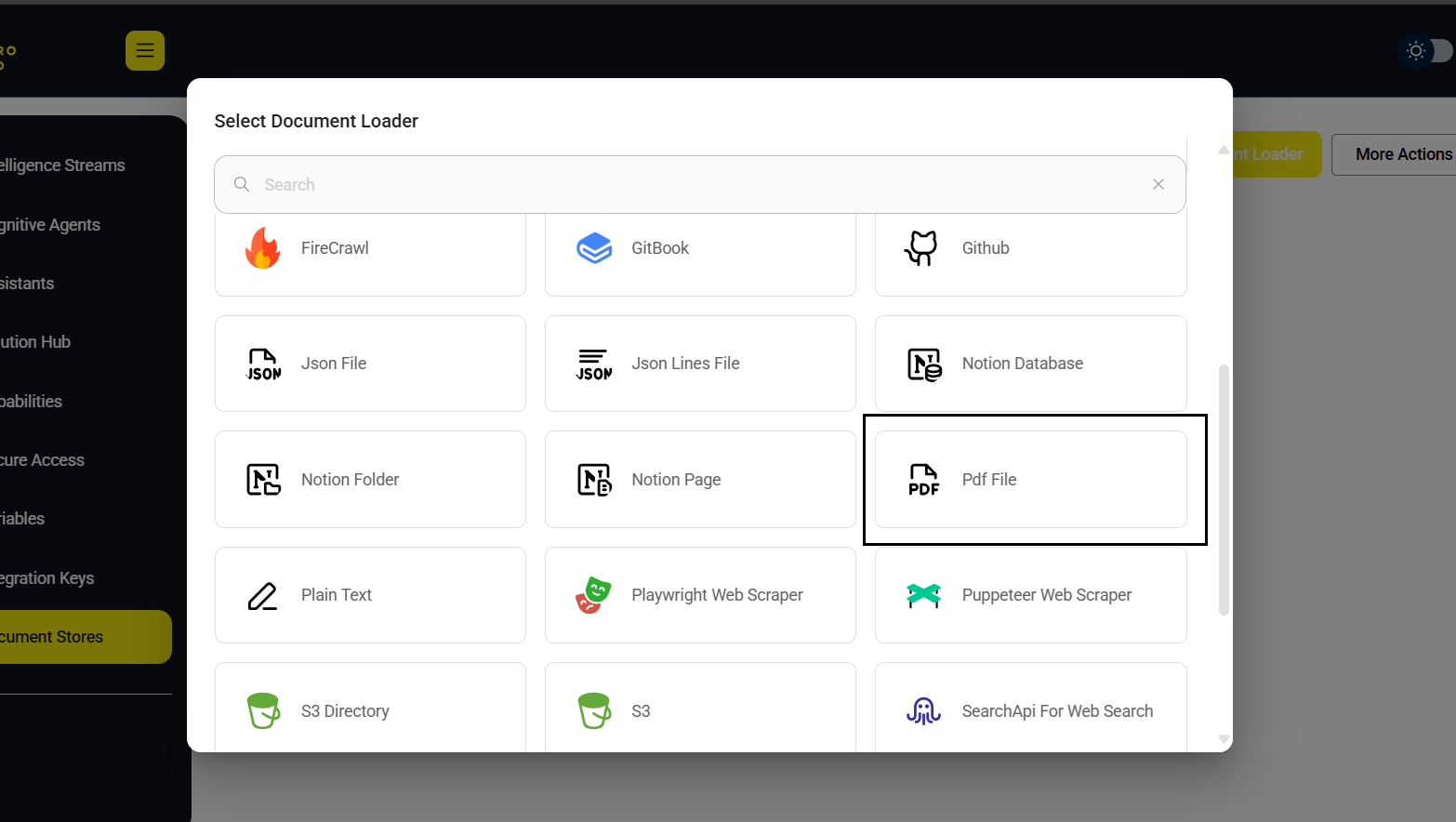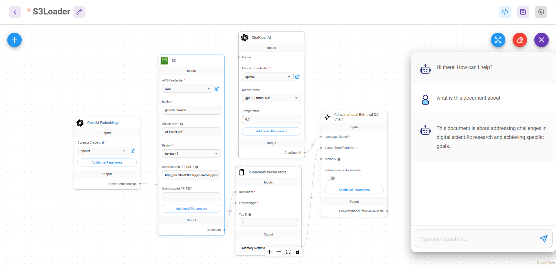 - We begin by feeding our raw data into aimicromind using the appropriate Document Loader node for your data format.