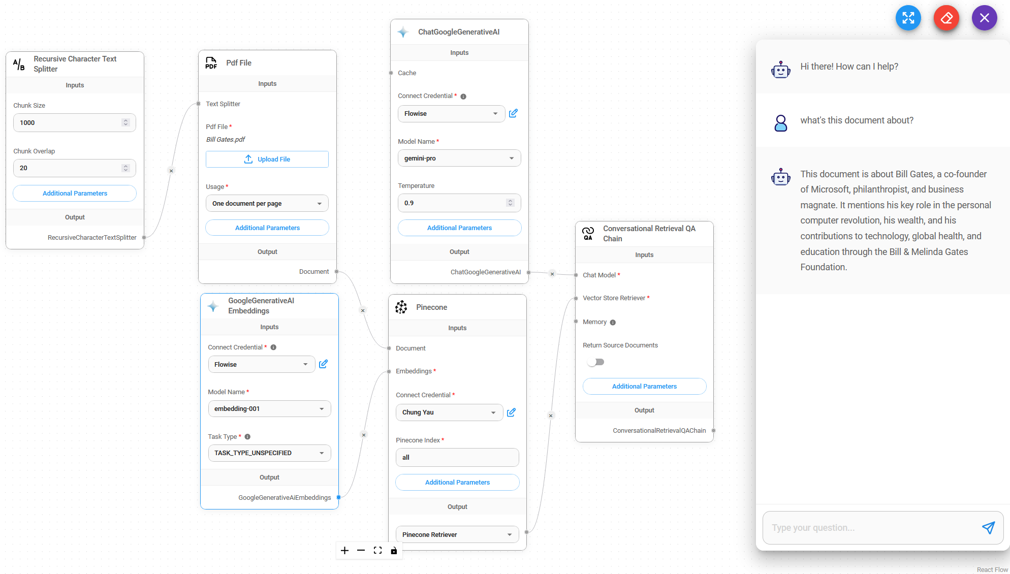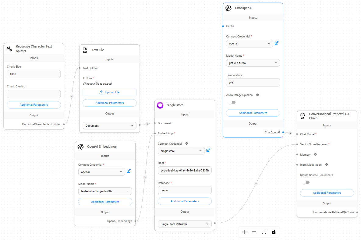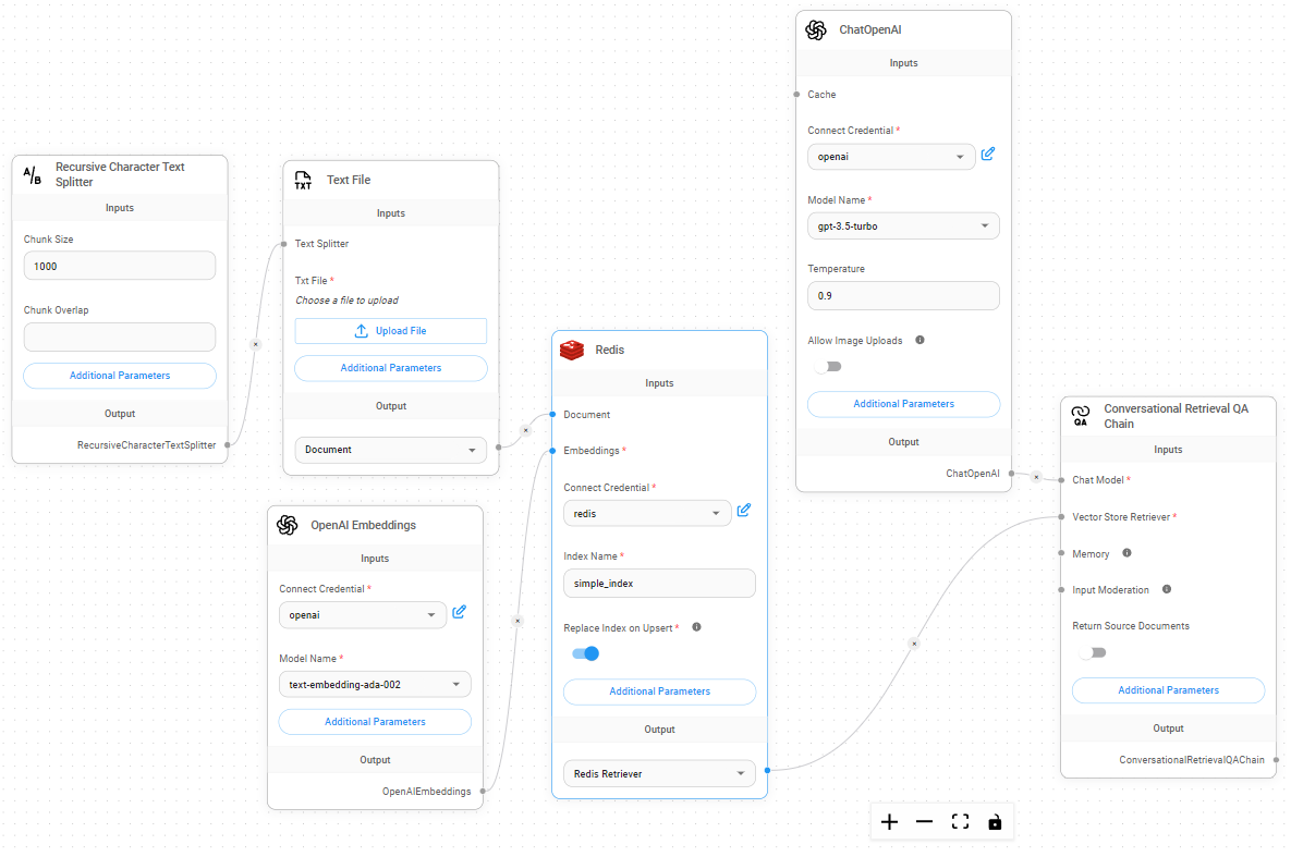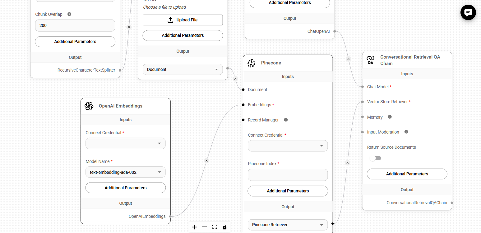 - Next, the Text Splitter node divides our document into smaller, more manageable chunks. This is crucial for efficient retrieval and cost control.