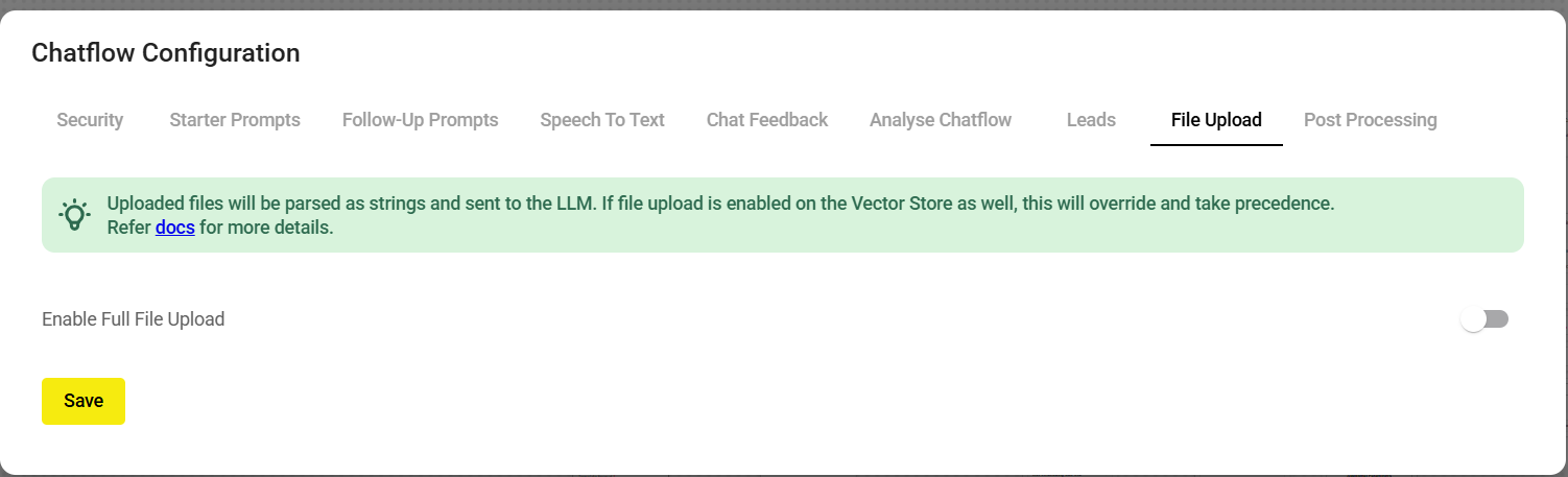 - Increase/Decrease Top K: Raising the default top K value (4) expands the number of chunks considered for response generation. While this can improve accuracy, it also increases cost.