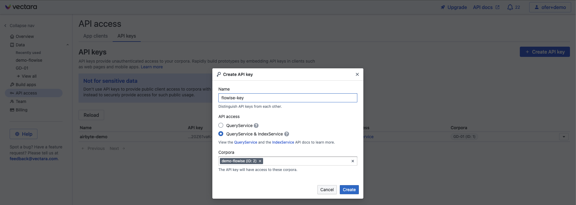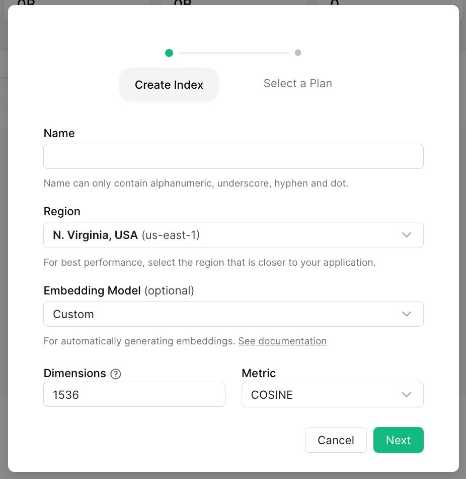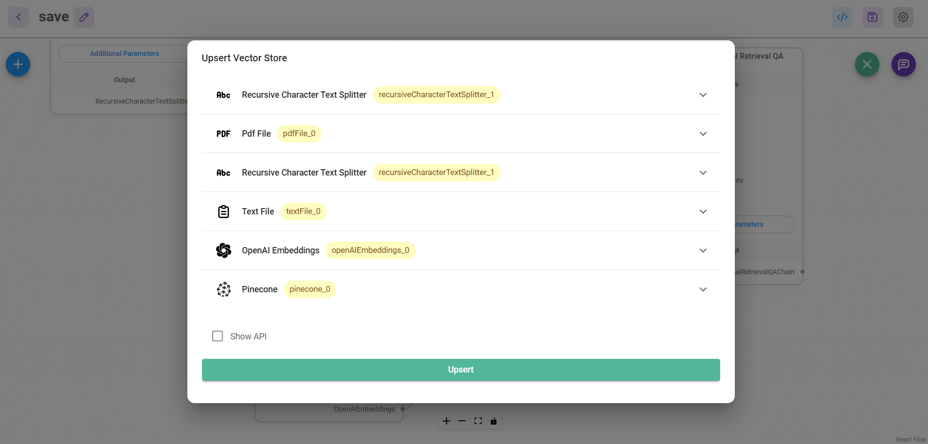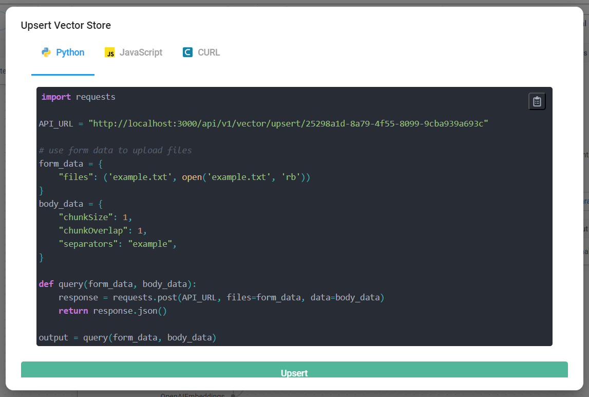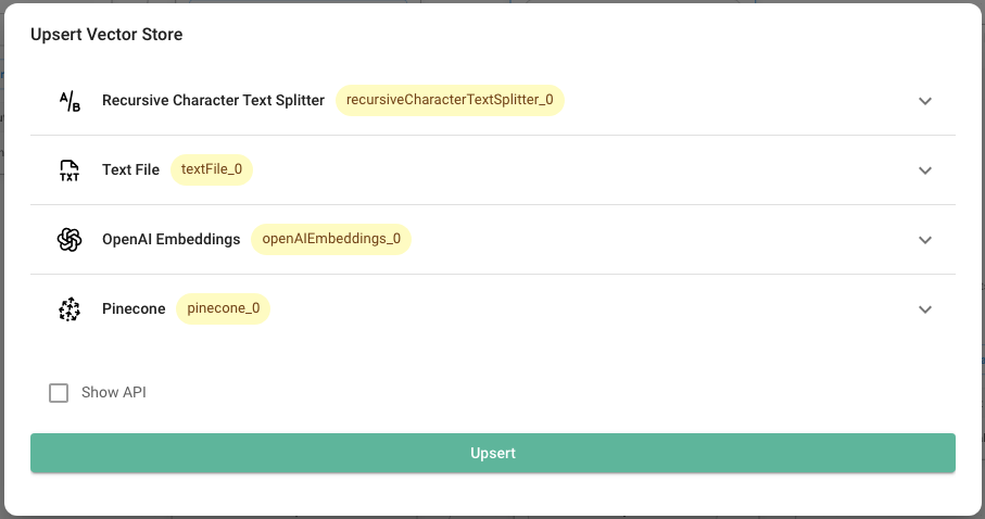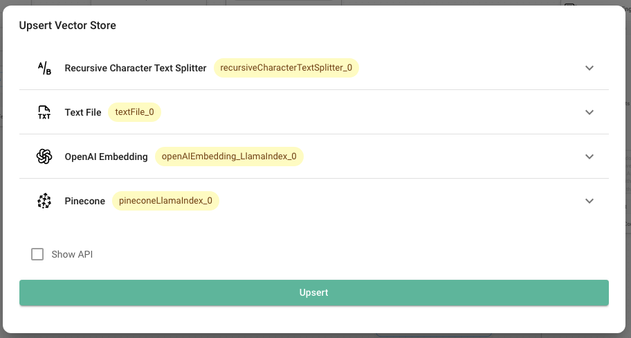 - A dialog will be shown that allow users to upsert data to Pinecone: