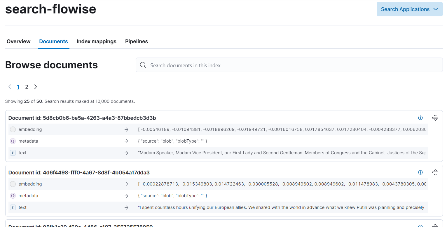 - Splitted data will be looped over, and converted to vector embeddings using OpenAI Embeddings