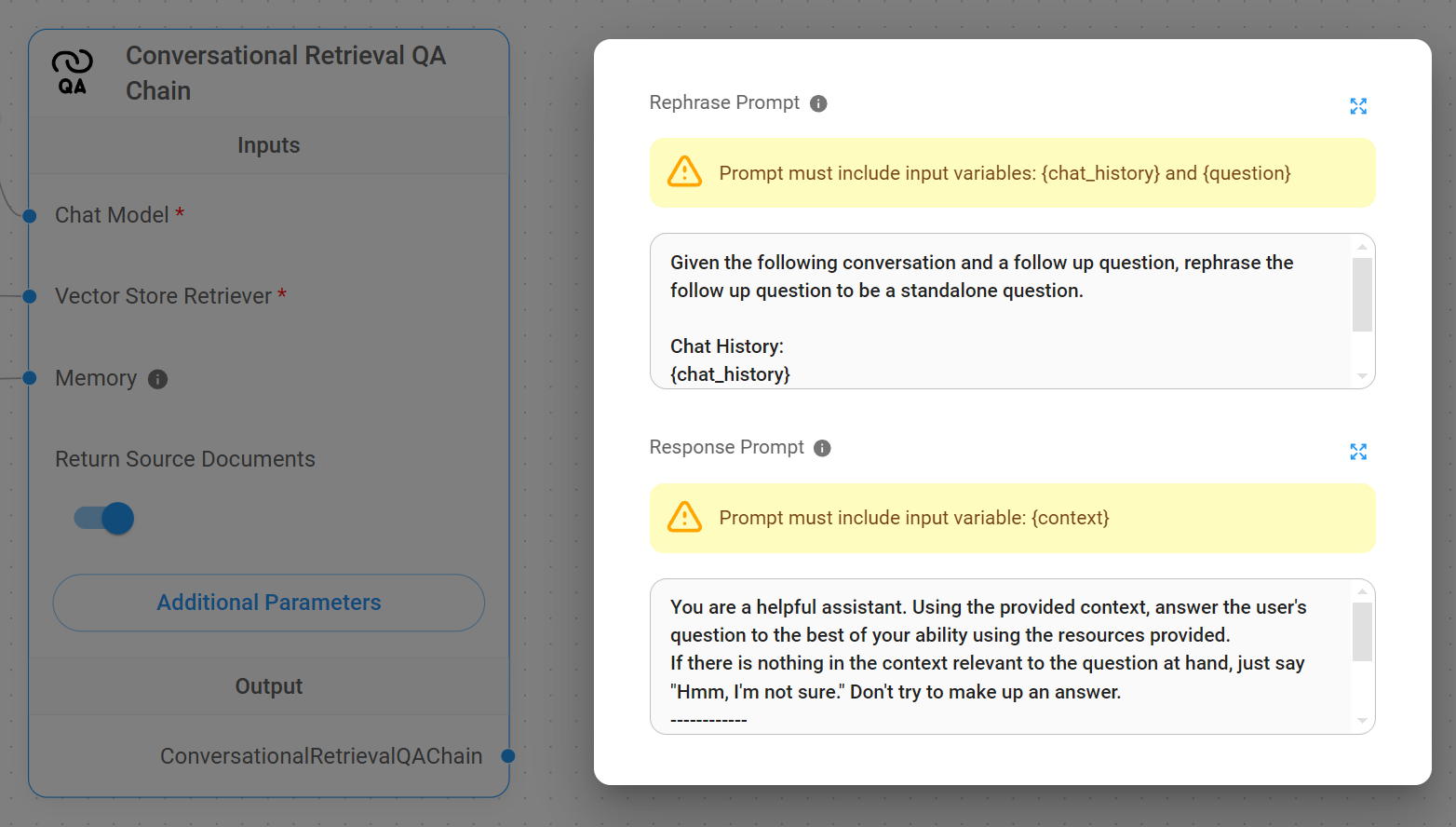 - Rephrase Prompt: Used to rephrase the question given the past conversation history